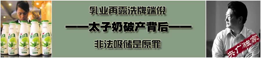 【事件經(jīng)過】隨著李途純因涉嫌非法吸收公眾存款罪被警方刑拘,風(fēng)雨飄搖的太子奶終于將走上破產(chǎn)重組這最后一條路。昨天,相關(guān)人士向記者證實,太子奶將申請司法重組一事已于日前獲得股東決議通過。 據(jù)悉,株洲市公安局經(jīng)偵支隊曾于月初發(fā)布網(wǎng)上追逃通緝令:2008年,湖南太子奶為解決資金困難,利用高息回報做誘餌,以“貨款準(zhǔn)備金”等形式,向單位個人變相非法吸收公眾存款6000余萬元,數(shù)額巨大,后果嚴(yán)重,涉嫌非法吸收公眾存款犯罪,犯罪嫌疑人太子奶集團公司董事長李途純在逃。目前,株州警方證實已對李途純等涉案人員采取了刑事強制措施。 【詳細(xì)】