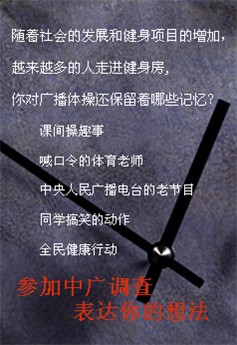 8分鐘,你能做些什么?匆匆的一頓早餐,與客戶的幾句寒暄,看韓劇的幾個鏡頭,魔獸爭霸壘幾個箭塔,抑或只是做個白日夢……8分鐘,是北京規(guī)定恢復(fù)廣播一套完整體操的時間。 擁有59年歷史的廣播體操在北京中斷3年后,回歸到部分人的生活,它還會像過去一樣必要么?如此“一場秀”或者只是喚起了一些人的記憶而已。 |
