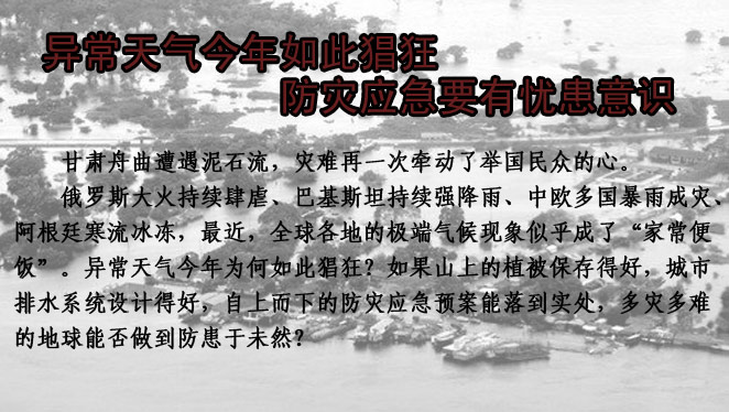 俄羅斯大火持續(xù)肆虐、巴基斯坦持續(xù)強(qiáng)降雨、中歐多國暴雨成災(zāi)、阿根廷寒流冰凍,最近,全球各地的極端氣候現(xiàn)象似乎成了“家常便飯”。異常天氣今年為何如此猖狂?多災(zāi)多難的地球能否做到防患于未然? <詳細(xì)>