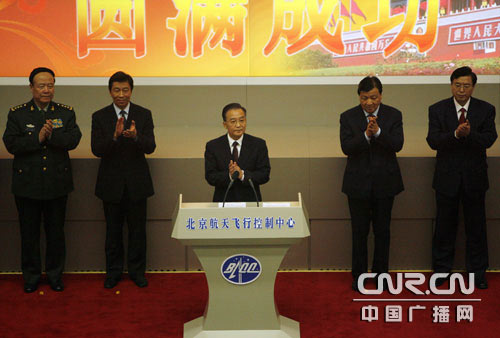 載人航天工程總指揮、中央軍委委員、解放軍總裝備部部長常萬全部長宣布神舟七號載人航天飛行任務(wù)結(jié)果。(中廣網(wǎng)記者南光 曹囡囡攝)