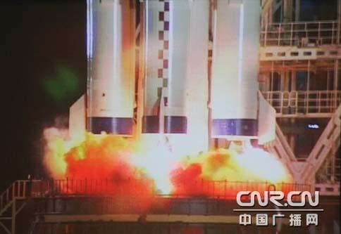 搭載著神舟七號載人飛船的長征二號F遙七運載火箭點火瞬間(記者南光 曹囡囡 攝)