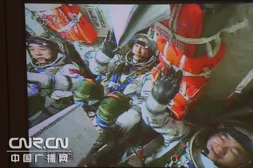 中華人民共和國國家主席中央軍委主席胡錦濤祝賀神舟七號載人航天工程圓滿成功(記者南光 曹囡囡 攝)