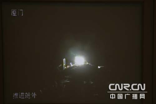 神舟七號(hào)載人航天飛船推進(jìn)艙外圖像首次顯示 中廣網(wǎng)記者南光 曹囡囡 攝