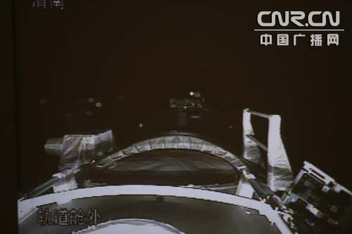 神舟七號(hào)載人航天飛船軌道艙外圖像首次顯示 中廣網(wǎng)記者南光 曹囡囡 攝