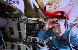 中廣網(wǎng)北京航天飛行控制中心9月26日快訊(記者曹囡囡 南光)軌道艙內(nèi),兩位航天員正在穿著艙外航天服。23:39,記者從指揮大廳顯示屏看到,航天員翟志剛、劉伯明剛剛穿著艙外航天服在軌道艙內(nèi)進(jìn)行按鍵操作。