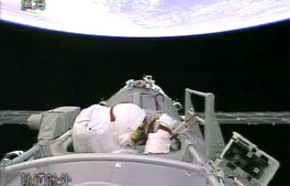 組圖:翟志剛走出艙外開始實(shí)施出艙活動(dòng)