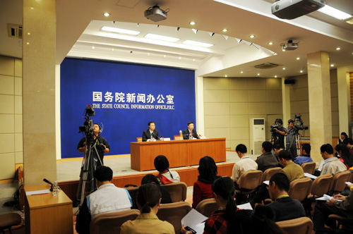 2008年9月27日(星期六)晚8時30分,國務(wù)院新聞辦公室舉行發(fā)布會。請中國載人航天工程辦公室副主任、載人航天工程新聞發(fā)言人王兆耀介紹神舟七號飛船運行、航天員出艙活動等情況,并答記者問。圖為國新辦新聞局副局長華清主持本次發(fā)布會。新華網(wǎng) 王翰林 攝