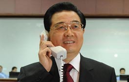 胡錦濤與三名航天員天地通話祝捷