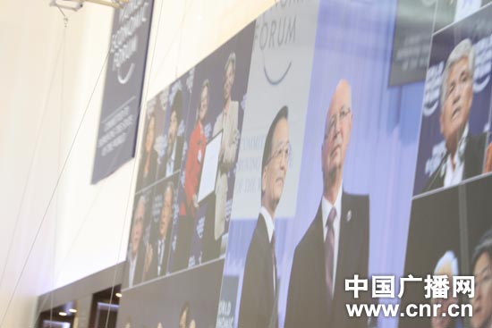 梅江會(huì)展中心的墻上醒目地掛著往屆達(dá)沃斯論壇回顧的巨幅照片。(中廣網(wǎng)記者朱虹 攝)