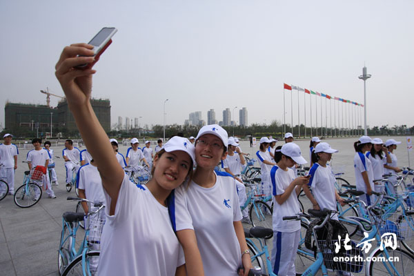 天津北方網(wǎng)訊:3日下午,2010天津夏季達(dá)沃斯論壇城市志愿者騎行隊(duì)成立暨“綠色騎行、快樂(lè)低碳”宣傳活動(dòng)啟動(dòng)儀式在梅江會(huì)展中心前廣場(chǎng)舉行。200位志愿者騎行隊(duì)員將深入本市主要街道和居民社區(qū),向市民和游客廣泛宣傳天津夏季達(dá)沃斯論壇和低碳環(huán)保理念。
