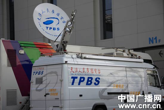 媒體轉(zhuǎn)播車集結(jié)會場外