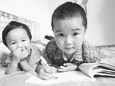 一年后,記者幾經(jīng)打聽(tīng)來(lái)到姚國(guó)亮的家中,他正趴在床上教已經(jīng)兩歲多的妹妹涂鴉。小國(guó)亮的媽媽說(shuō),“我們兩口子有時(shí)候出門去忙生意,一離開(kāi)就是大半天,都是他在家照顧妹妹!
