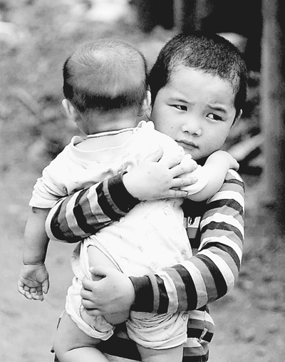 只有6歲的小男孩姚國(guó)亮,懷里緊緊抱著1歲多的妹妹姚淑娟,目光平靜地走來(lái)。去年8月,舟曲特大山洪泥石流暴發(fā)后,這張新聞?wù)掌钊藙?dòng)容,成了舟曲在那場(chǎng)災(zāi)難中的經(jīng)典影像之一。
