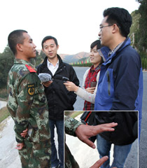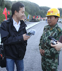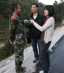 中央臺記者孫杰、王嫻采訪武警交通部隊?wèi)?zhàn)士