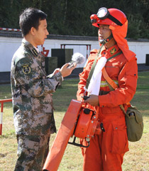 中央臺記者孫杰采訪訓(xùn)練中的森警