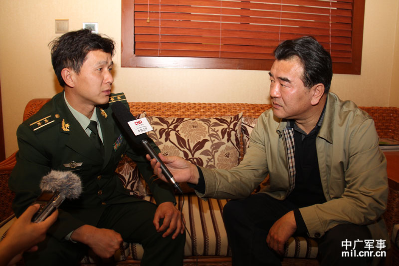 記者王求采訪武警交通部隊二總隊五支隊總工程師陳順先 中廣軍事記者劉鵬攝