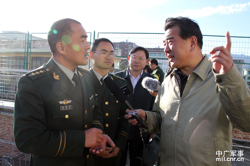 武警云南總隊(duì)保山市支隊(duì)騰沖縣中隊(duì)向采訪團(tuán)介紹情況 中廣軍事記者劉鵬攝