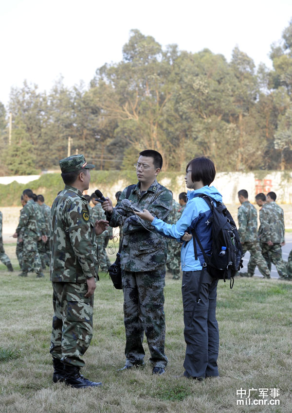 中央臺記者陳欣、周堯采訪武警云南省總隊第三支隊基層官兵(中央臺記者劉鵬攝)