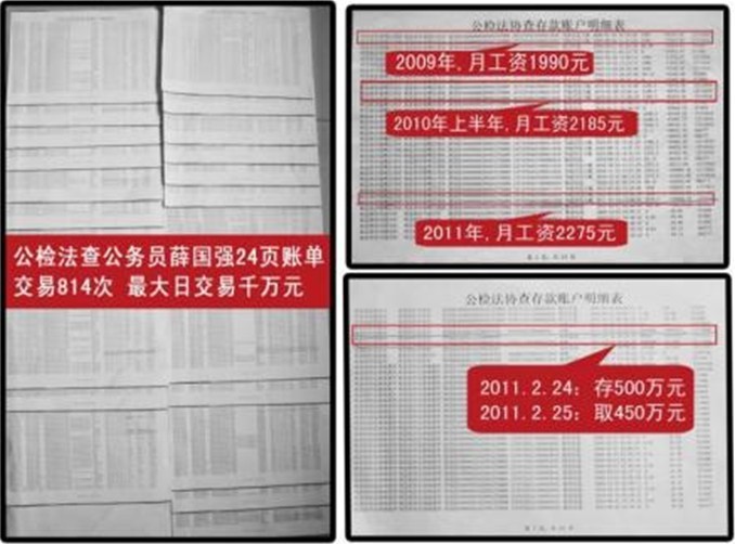 近日,有網友發(fā)帖稱,自己撿到一個檔案袋,袋中銀行賬戶過賬資料顯示,戶主薛國強從2006年6月至2011年3月,在農信社賬戶交易814次,其中單日最大交易額達1000萬元,一日數(shù)百萬元、數(shù)十萬元的交易額度有多次。網友還發(fā)現(xiàn),薛國強系河南省平頂山市郟縣的公職人員,網友質疑其“日出千萬”收支的合法性。