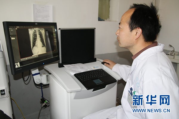 3月28日,安徽省六安市金安區(qū)中店鄉(xiāng)衛(wèi)生院醫(yī)生在演示年初新購置的CR設(shè)備。據(jù)介紹,這套設(shè)備可用于醫(yī)學(xué)影像分析,還可以遠(yuǎn)程會診。有了這套設(shè)備,病人就可以在鄉(xiāng)衛(wèi)生院接受市級醫(yī)院的專家會診。新華網(wǎng)記者 姜春媛攝