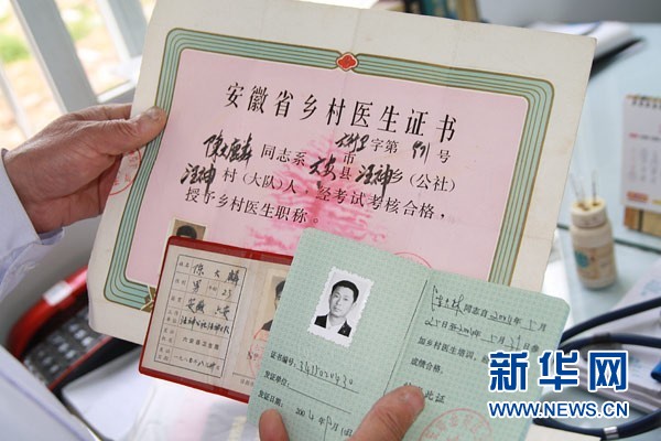 3月28日,安徽省六安市金安區(qū)中店鄉(xiāng)汪神村衛(wèi)生室室長陳大麟向記者展示他的多個行醫(yī)資格證。這些資格證見證了這名村醫(yī)走過的路。新華網(wǎng)記者 姜春媛攝