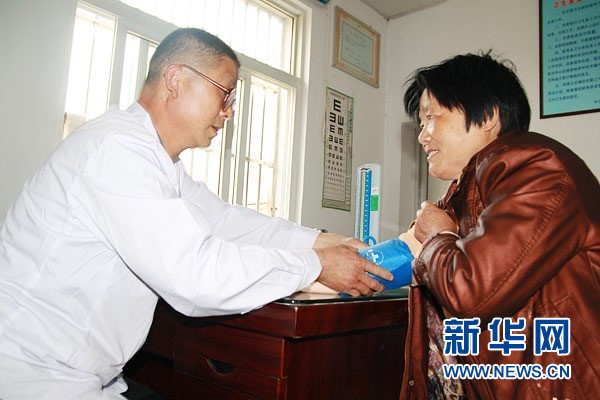3月28日,陳大麟在給病人量血壓。新華網(wǎng)記者 姜春媛攝