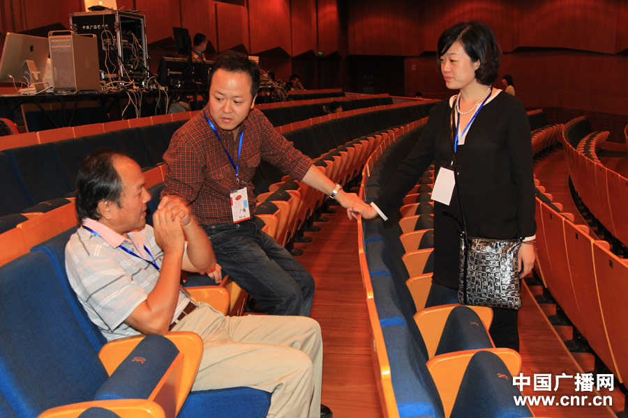中央臺(tái)文藝處工作人員協(xié)調(diào)晚會(huì)拍攝機(jī)位
