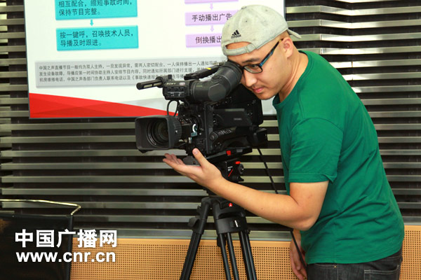 中廣網(wǎng)直播團隊成員王維在中央臺直播間錄制《中國大舞臺》節(jié)目