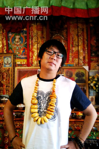 康珠的家雖然是租的房子,雖然客廳只有5-6平米,但是經(jīng)過他精心的裝飾和布置,房間四壁掛滿了佛像、照片、壁畫,充滿了藏族特色。剛坐下,康珠就為我們斟滿家鄉(xiāng)的茶,一種很香的據(jù)說可以緩解高原反應(yīng)的茶,這個(gè)時(shí)候,我才認(rèn)真的打量了康珠一番:黝黑的皮膚、又黑又濃的自來卷頭發(fā)、胸前長(zhǎng)長(zhǎng)的佛珠,再加上單純善良的笑容,典型藏族男人的形象。之前我對(duì)他的了解,僅限于“商家描述”:他算西藏特產(chǎn)的“一級(jí)批發(fā)商”,諸如蜜蠟、綠松石之類的很多原礦石,他從普通藏民家收購回來,然后倒手賣給八廊街的店鋪;而像藏刀、手串這種工藝品,他還會(huì)自己制作,選料正宗、工藝還算精美,所以,他賣的東西,要比普通店鋪便宜很多。只是他的貨品不全,你來了,趕上他“收”到了什么東西,就看什么東西;如果你有特定要求,比如什么品質(zhì)的蜜蠟、什么樣子的首飾,他再幫你找或者制作,有點(diǎn)“私房菜”的意思。