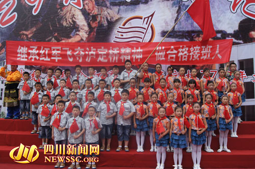 四川新聞網(wǎng)甘孜5月30日訊(瀘宣)為紀(jì)念紅軍飛奪瀘定橋勝利77周年,進(jìn)一步促進(jìn)學(xué)校創(chuàng)先爭優(yōu)及校風(fēng)建設(shè)活動的深入開展,5月29日上午,瀘定縣成武小學(xué)全體師生懷著對紅軍精神的無限崇敬以及對革命先烈的緬懷之情隆重舉行了以“弘揚紅軍長征精神、爭做四好少年”為主題的紀(jì)念紅軍飛奪瀘定橋勝利77周年文藝匯演。瀘定縣人大主任胡林、副主任周伯云、縣委宣傳部領(lǐng)導(dǎo),共青團(tuán)瀘定縣委書記劉小會參加了本次慶;顒。