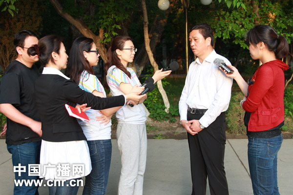 劉黎黎(右)、杜希萌(左四)、楊寧(左三)在《傾聽新疆》活動中采訪新源縣委書記