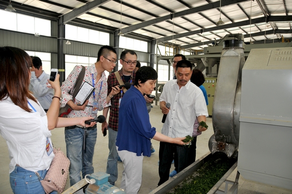 中央人民廣播電臺副臺長趙忠穎在香葉尖茶業(yè)廠房了解茶業(yè)生產(chǎn)過程