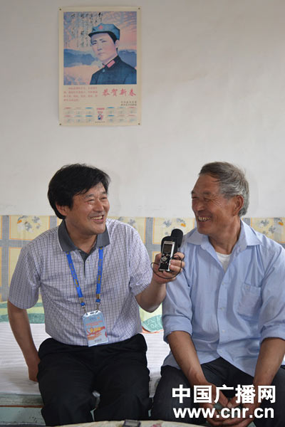 中央人民廣播電臺(tái)副總編輯李國(guó)君在農(nóng)戶李克斌家采訪(中廣網(wǎng)記者董浩攝)