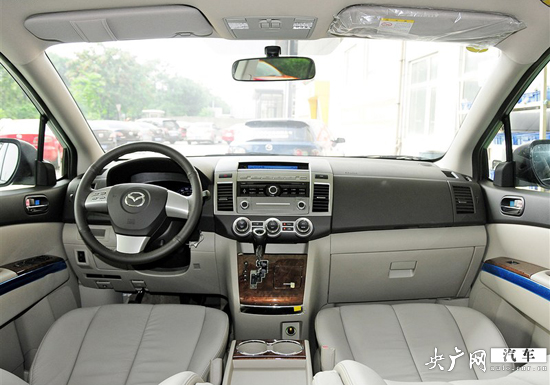 馬自達8的內(nèi)飾上設(shè)計延續(xù)了外觀的硬朗風(fēng)格,整體線條布局區(qū)域平直,中控臺的銀色面板和桃木的搭配帶出幾絲活躍的氣息,搭配米色調(diào)的門板和座椅,使得馬自達8的內(nèi)飾風(fēng)格更趨于家用化。