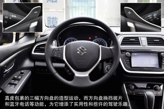內(nèi)飾部分的設(shè)計(jì)比較簡單,功能性沒有問題。全黑內(nèi)飾搭配銀色裝飾條是鈴木的標(biāo)準(zhǔn)配置,突出運(yùn)動(dòng)基因。三幅方向盤集成有多功能鍵和換擋撥片,在同屆別SUV車型中并不常見。在配置方面,鋒馭全系標(biāo)配一鍵啟動(dòng)和車身穩(wěn)定控制系統(tǒng),顯得非常厚道,在精英版上還能找到導(dǎo)航、倒車影像、自動(dòng)空調(diào)等豪華配置,特別是全景天窗,非常有吸引力。