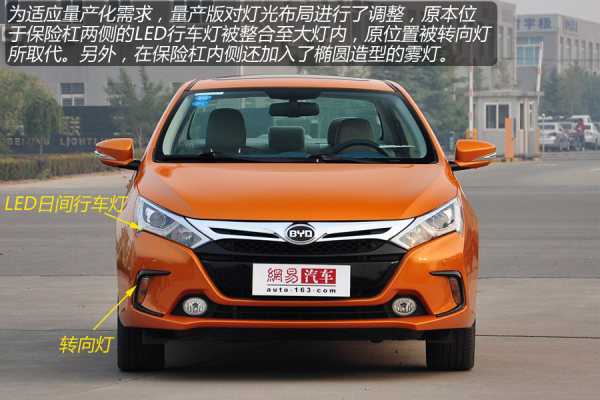 秦量產(chǎn)版大致延續(xù)了概念車(chē)的整體設(shè)計(jì),與速銳的中庸設(shè)計(jì)相比,顯得更加的前衛(wèi)、霸氣。為適應(yīng)量產(chǎn)化需求,量產(chǎn)版對(duì)燈光布局進(jìn)行了調(diào)整,原本位于保險(xiǎn)杠兩側(cè)的LED行車(chē)燈被整合至大燈內(nèi),原位置被轉(zhuǎn)向燈所取代。另外,在保險(xiǎn)杠內(nèi)側(cè)還加入了橢圓造型的霧燈。