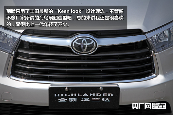 很多人管漢蘭達叫大漢,但這個大漢卻又不是粗糙的摳腳大漢,絕對是經(jīng)過精心設(shè)計的。前臉采用了豐田最新的“Keen look”設(shè)計理念,不管像不像廠家所謂的海鳥展翅造型吧,總的來講我還是很喜歡的,顯得比上一代年輕了不少。頂配車型采用了LED自動頭燈,其他配置車型則都使用的是鹵素光源。