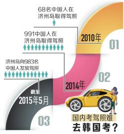 而截至2015年5月,濟(jì)州島已向1093名外國(guó)人發(fā)放了駕照,其中中國(guó)人占了90%。另?yè)?jù)公安部統(tǒng)計(jì)數(shù)據(jù)顯示,2013年,中國(guó)共辦理持境外駕駛證換領(lǐng)中國(guó)駕駛證82140本,持韓國(guó)駕駛證換領(lǐng)中國(guó)駕駛證占境外駕駛證換證總數(shù)的8.7%。