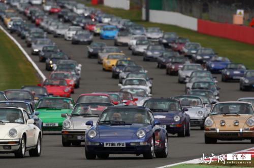 為了慶祝50周年,保時(shí)捷911在銀石賽道舉行了一場(chǎng)別開生面的50周年慶典,1208輛911跑車齊聚一堂,在著名賽道上展開了“壓馬路”大游行。