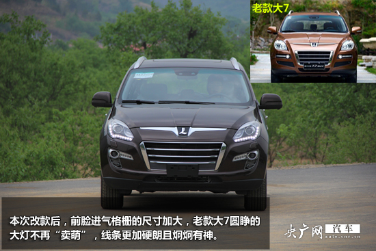 本次改款后,前臉進(jìn)氣格柵的尺寸加大,老款大7圓睜的大燈不再“賣萌”,線條更加硬朗且炯炯有神。同時(shí)前大燈的結(jié)構(gòu)也改進(jìn)為氙氣大燈搭配“L”造型LED日間行車燈,實(shí)際駕駛中,燈光將視行駛環(huán)境自動(dòng)開啟關(guān)閉,非常方便。