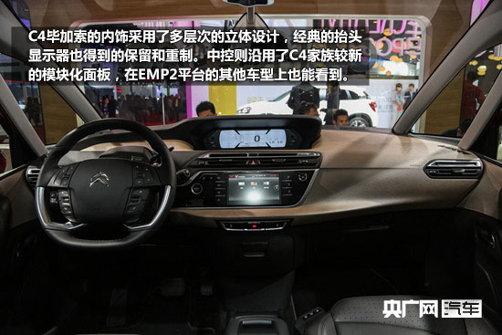 內(nèi)飾上,新畢加索借鑒了很多DS上的設(shè)計元素,這也讓它有了非常不錯的精致和豪華感。方向盤形狀類似于橢圓形,而且做了平底設(shè)計,給人的運動感不錯。因為沒有傳統(tǒng)的儀表盤,而且采用了屏幕中置的設(shè)計,使得前方視野非常開闊。
