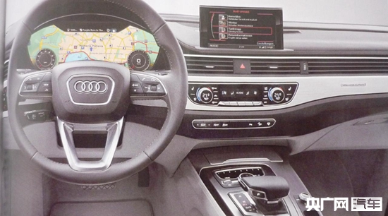 內(nèi)飾方面,新一代A4采用了類似新一代Q7的內(nèi)飾樣式,全數(shù)字化液晶儀表板,集成了導(dǎo)航等功能,顯示效果非常好,科技感十足。中控臺(tái)中央的多媒體顯示器獨(dú)立于中控臺(tái)存在,新車中央出風(fēng)口采用了一體式設(shè)計(jì),中控臺(tái)整體更具層次感。