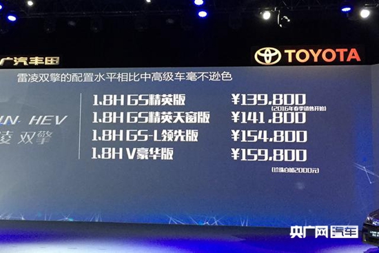 廣汽豐田雷凌雙擎上市 售13.98-15.98萬元