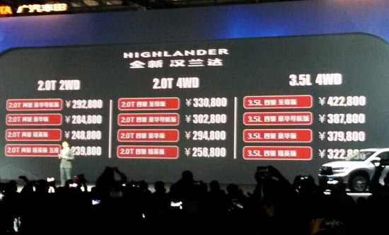| 廣汽豐田 全新漢蘭達(dá) | 指導(dǎo)價(jià)(萬元) |