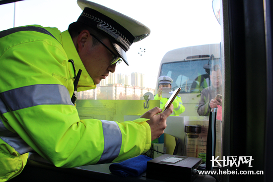 此外,記者在裕華高速口春運(yùn)安檢現(xiàn)場(chǎng)還看到,許多固定班線(xiàn)的客車(chē)上貼著一張二維碼。張博告訴記者,高速交警石家莊大隊(duì)在2016年春運(yùn)時(shí)研發(fā)了“客運(yùn)車(chē)核查平臺(tái)”。駐客運(yùn)站民警對(duì)途經(jīng)高速裕華路口班線(xiàn)客車(chē)信息(車(chē)輛狀況、乘客數(shù)量、司機(jī)乘務(wù)員情況、正常行駛情況、車(chē)輛違法記錄等)在離站前統(tǒng)一錄入核查平臺(tái)后,會(huì)自動(dòng)生成一張與該車(chē)對(duì)應(yīng)的紙質(zhì)二維碼,當(dāng)客車(chē)行至高速裕華口進(jìn)行檢查時(shí),民警只需使用手機(jī)專(zhuān)用的客車(chē)核查APP掃碼軟件掃描已粘貼的二維碼,車(chē)輛的所有信息會(huì)自動(dòng)顯示在手機(jī)上,從而提高安檢效率。
