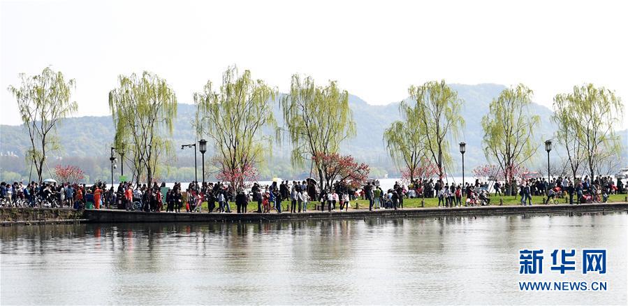 當(dāng)日是清明小長(zhǎng)假第一天,浙江杭州天氣晴好,西湖堤岸桃紅柳綠,吸引眾多游客。