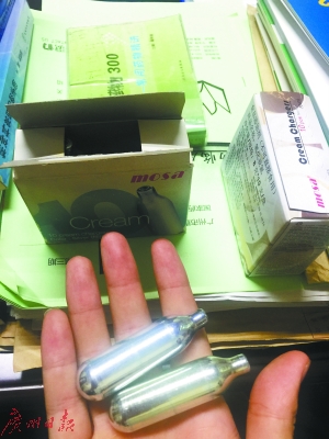 近日,有市民稱在廣州的一些娛樂場所內(nèi)發(fā)現(xiàn)“笑氣彈”的身影。還有市民表示,在海珠區(qū)一個(gè)酒店用品批發(fā)市場內(nèi)的部分廚具和烘焙用品店內(nèi)可以輕易買到商品名稱為“氧化亞氮”的“笑氣彈”,價(jià)錢約45~65元一盒,銷售的對(duì)象多為開咖啡店或餐廳的餐飲業(yè)人員。