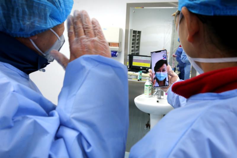 3月14日,韓傳恩與李婷一起同董娟進(jìn)行視頻連線合影。韓傳恩是商丘市第一人民醫(yī)院院長(zhǎng),也是河南第十一批援鄂醫(yī)療隊(duì)總隊(duì)長(zhǎng),負(fù)責(zé)支援武漢大學(xué)人民醫(yī)院危重癥病人的醫(yī)療救治工作。2009年,手足口病肆虐豫東,武漢大學(xué)人民醫(yī)院組織醫(yī)護(hù)隊(duì)員加入到國(guó)家專家團(tuán)隊(duì),趕赴商丘,克服重重困難,實(shí)現(xiàn)了患兒零死亡,扭轉(zhuǎn)了商丘在手足口病重癥救治上的被動(dòng)局面。韓傳恩在得知2009年曾經(jīng)到商丘市第一人民醫(yī)院支援手足口病救治工作的護(hù)士李婷、董娟正在抗擊新冠肺炎一線后,大家都很激動(dòng),感慨兩個(gè)團(tuán)隊(duì)時(shí)隔11年又能夠攜手并肩,為抗擊新型冠狀病毒肺炎一起戰(zhàn)斗。然而,董娟不慎感染新型冠狀病毒,目前正在治療康復(fù)中。韓傳恩與她視頻連線,鼓勵(lì)她保持樂(lè)觀心態(tài)戰(zhàn)勝病魔。“我們是懷著感恩的心來(lái)到武漢的,醫(yī)院第一時(shí)間組建了62人的危重癥救治專家團(tuán)隊(duì)。”韓傳恩說(shuō),“2009年,河南遭受手足口病肆虐時(shí),武漢的醫(yī)務(wù)工作者第一時(shí)間奔赴河南,支援商丘的手足口病救治工作。如今武漢人民遇到困難,我們盡自己綿薄力量,與武漢人民一道共同戰(zhàn)勝疫情!保ê幽先?qǐng)?bào)記者 王錚攝)