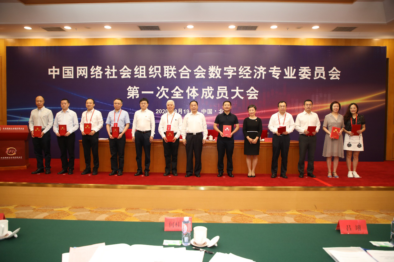 (任賢良會長向中網(wǎng)聯(lián)數(shù)字經(jīng)濟專委會主任委員和副主任委員頒發(fā)證書)