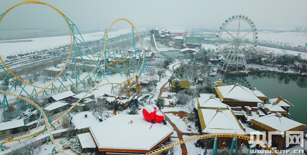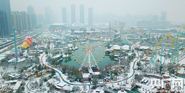 央廣網(wǎng)合肥1月7日消息 2018新年伊始,合肥迎來首場(chǎng)降雪。雪后,合肥全城銀裝素裹,位于城南的萬(wàn)達(dá)樂園開啟雪靜美如畫模式。(陳登余 攝)